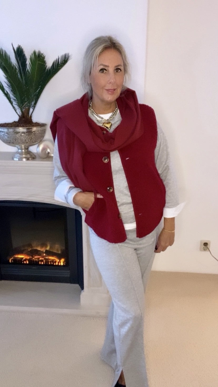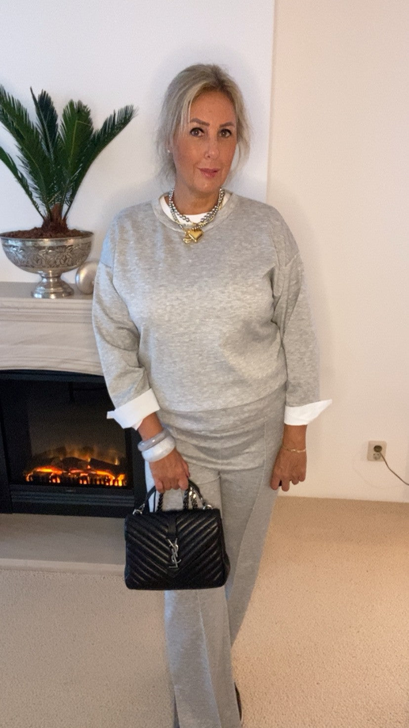 Comfort en stijl in één set: deze jogging set met een sweater look blouse bovenstuk en losse broek met zijsplit voor ultiem comfort en stijl.