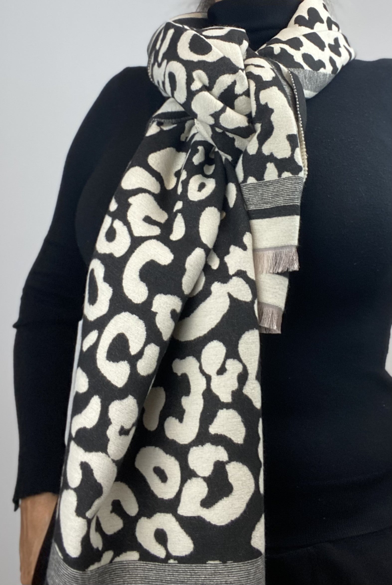 Omarm de kou met deze prachtige zachte zwart beige sjaal.